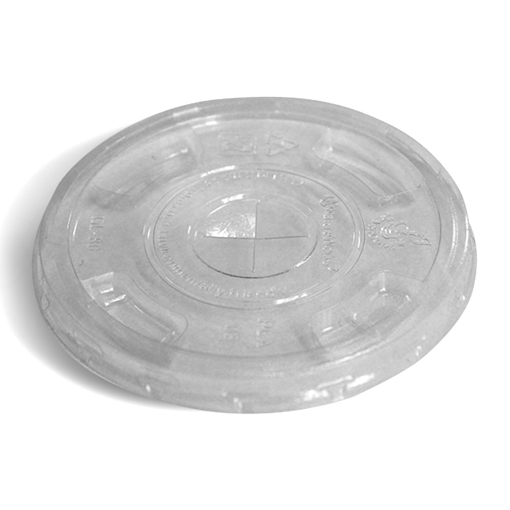 The 350ml flat lid with a straw slot looks like conventional plastic but is made from corn, an annually renewable resource.