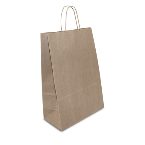 This brown paper gift bag with a paper twist handle is made from 140gsm unbleached recycled paper.